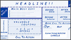 In this section we offer an overview or composite of the essential components used to achieve terrific results for dental practices of every size all across America. It is an interactive means of illustrating the mechanics or working components as well as the strategic and tactical thinking that go into our high-impact, direct-response dental marketing postcard designs.