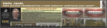 Here is just one example of how this terrific new technology can be used to make your monthly marketing Comments really hit home with all the potential new patients on your mailing list. This type of added one-to-one digital customization has been proven to boost response rates by as much as 36% while increasing average profit per call. If you want to take your direct-response program to a whole new level of effectiveness, we highly recommend VDP.